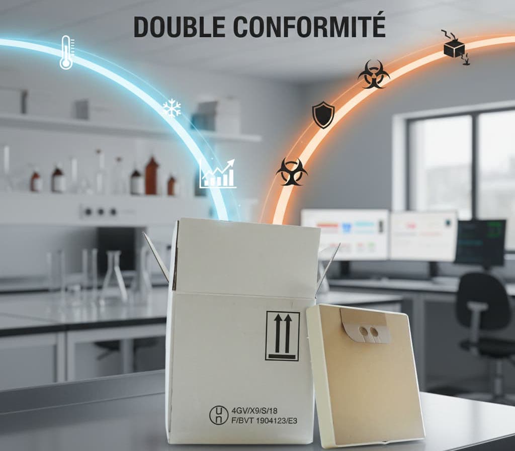 - La Réglementation des Matières Dangereuses (IATA, ADR, IMDG) : Si le produit transporté (par exemple, un échantillon biologique) est classé comme matière dangereuse, l'emballage doit en plus être homologué UN.